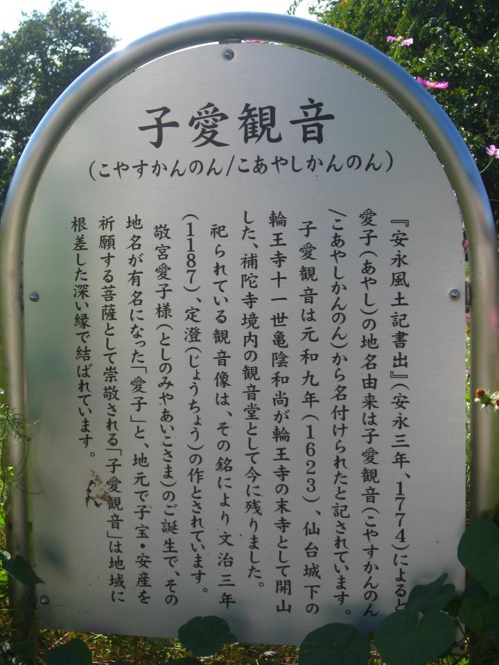 愛子(あやし)の地名の由来となった子愛(こやす/こあやし)観音です。