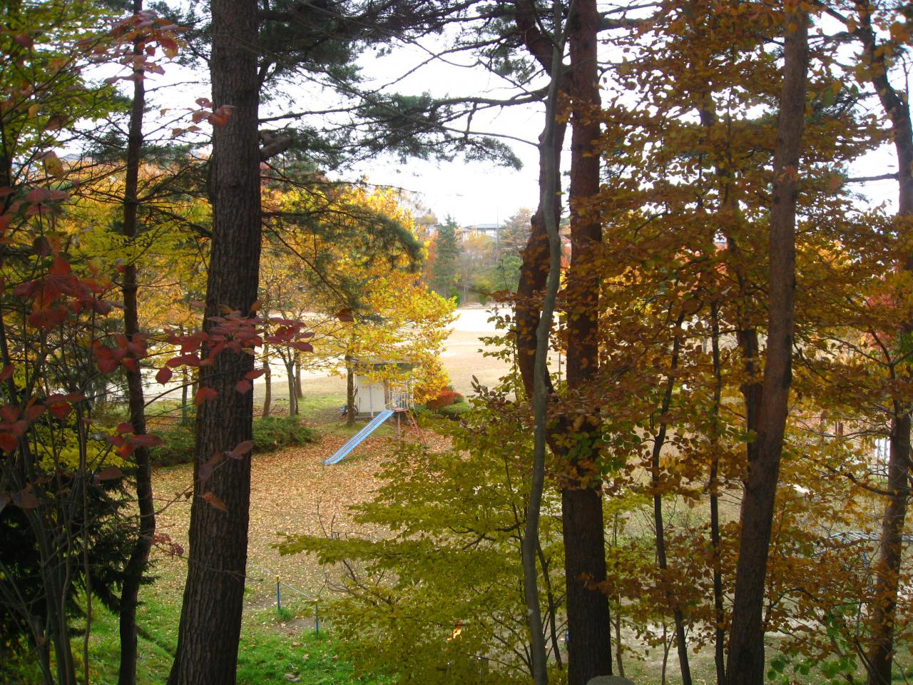 ちょっとした林と東屋なんかもあり、紅葉が秋の深まりを感じさせます。