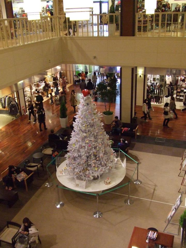 泉パークタウン、Tapio南館サウスコートにある白のクリスマスツリーです。