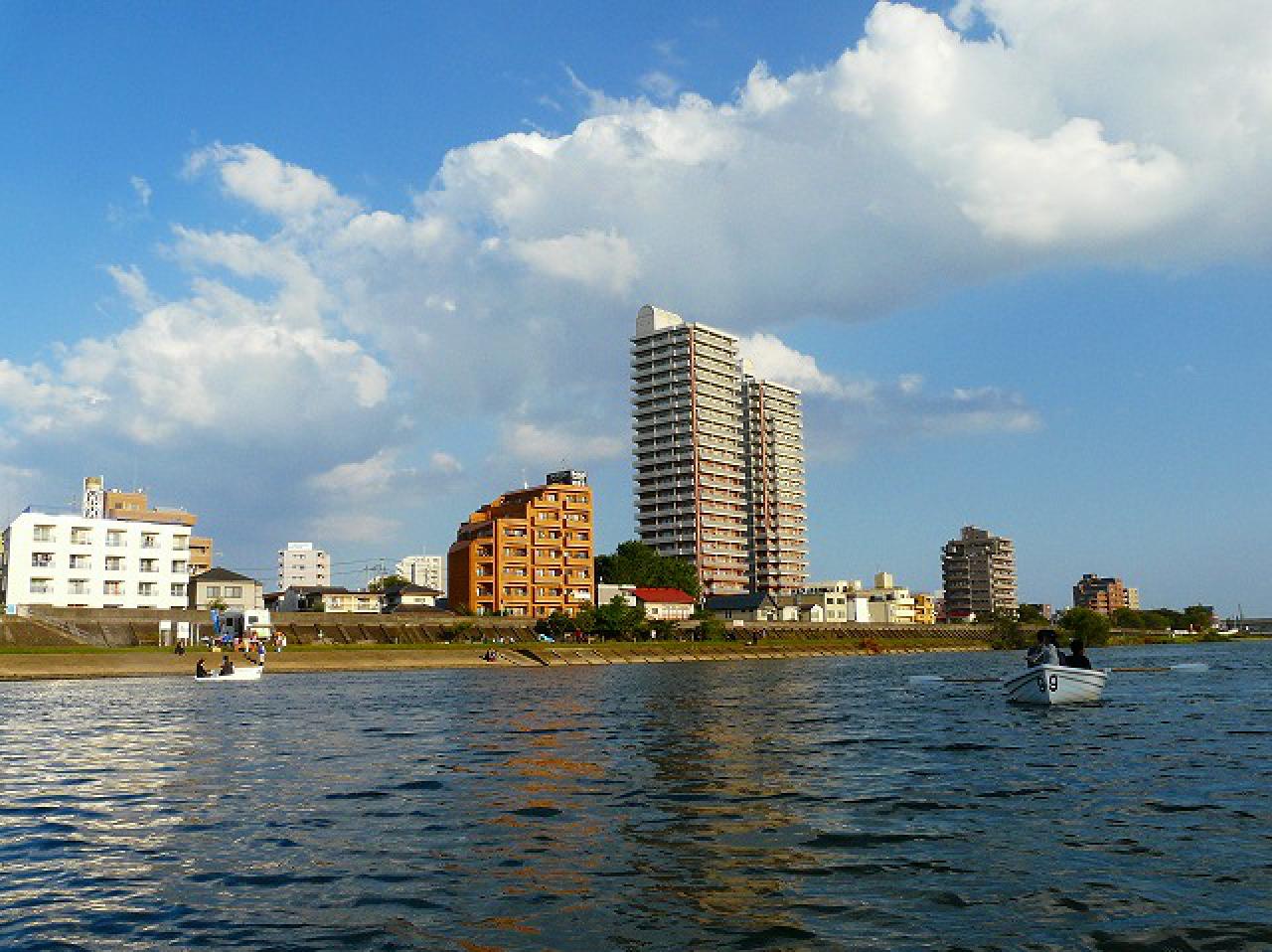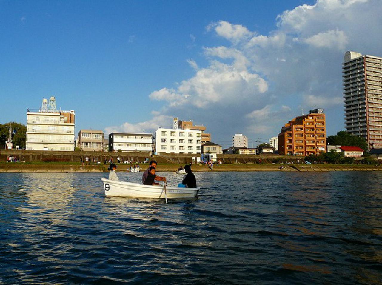 広瀬川沿岸、宮沢橋下で、ボートに乗りました。