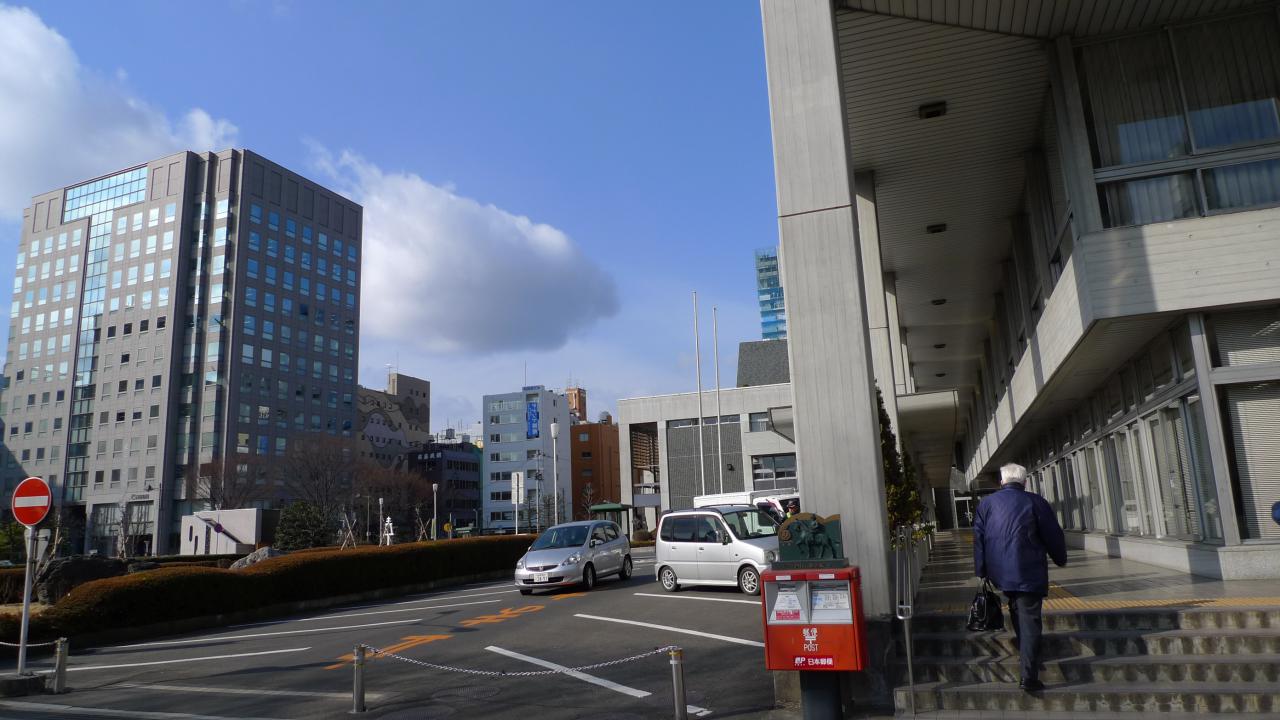 仙台市役所前には仙台市人口100万人達成を記念した伊達政宗の像が乗っているポストがあります。