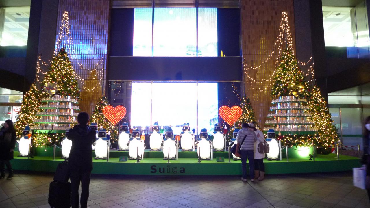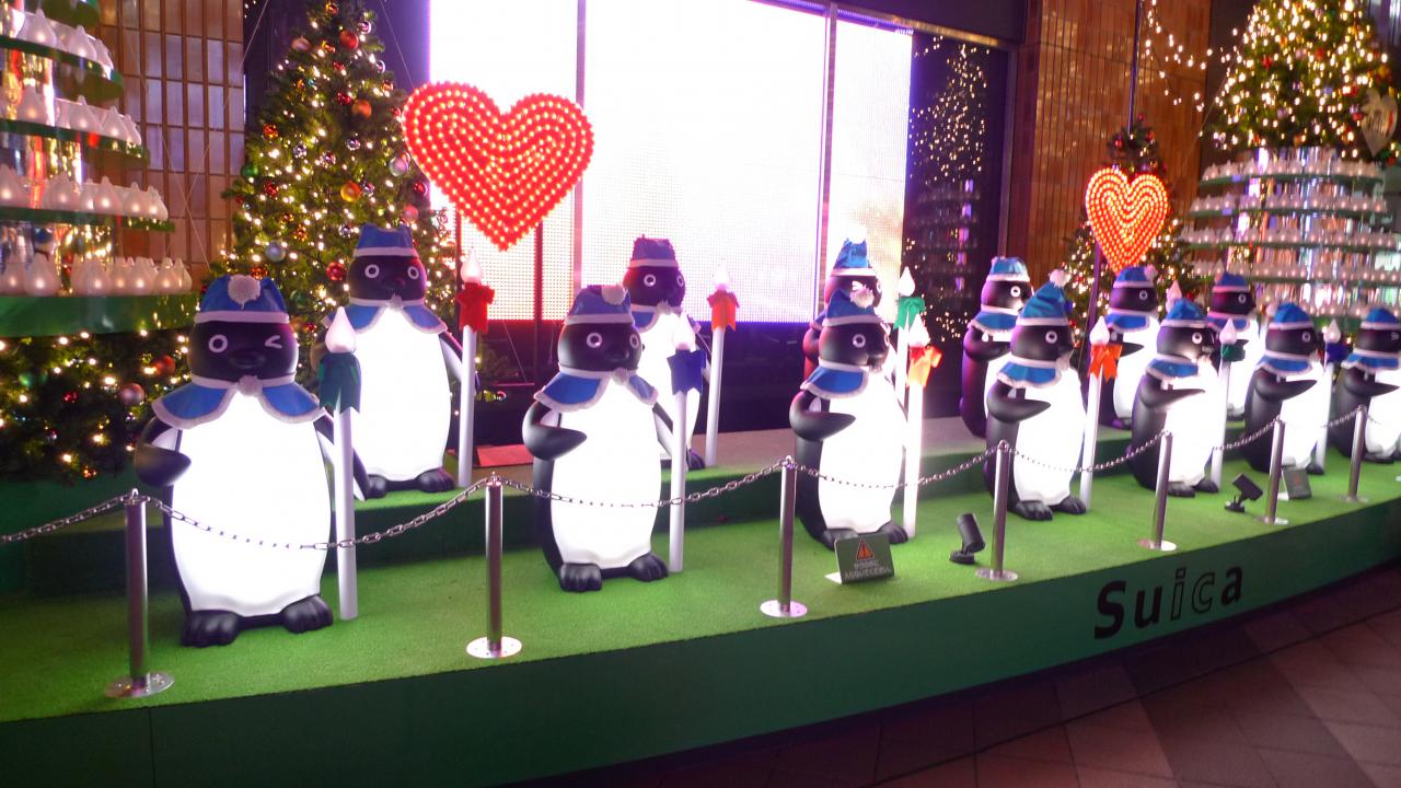 仙台駅西口の「光のSuica ペンギンオブジェ」です。