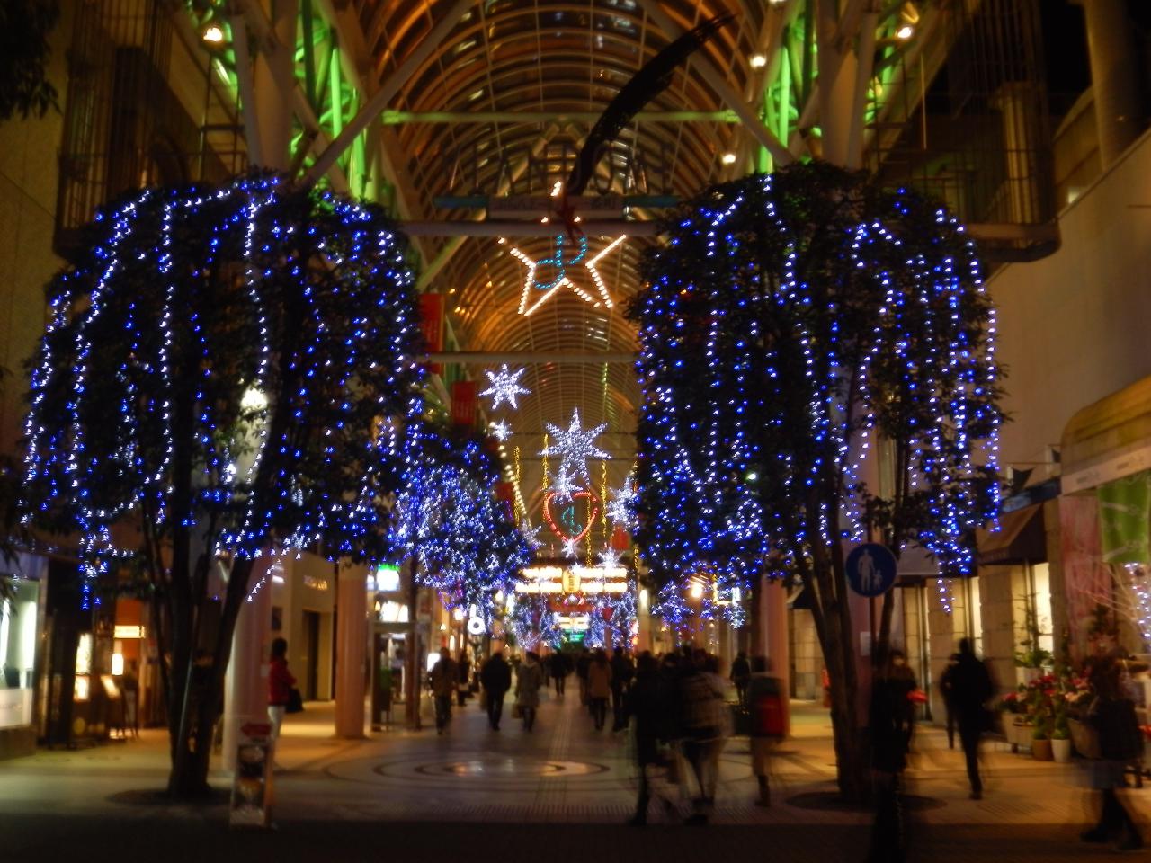 藤崎のアーケード側の入り口とフォーラス方面のアーケード。