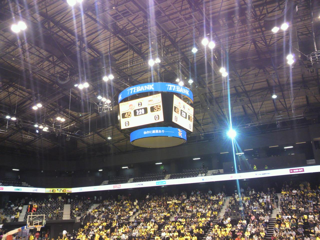 「あすと長町」内にある大型スポーツ施設で、bjリーグ「仙台89ERS」のホームゲームをはじめ、コンサート会場など様々な活用形態を持つアリーナです。座席数は1F席から3F席まであり約4000席。可動式の席を使うと最大収容人数は約6000人です。バスケット観戦時の2F席は1F席と通路を境にしただけで繋がっており(エリアによりますが)2階という感覚はありません。天吊の4面マルチディスプレイがなんと言っても印象的です。迫力のバスケット観戦!おすすめです。