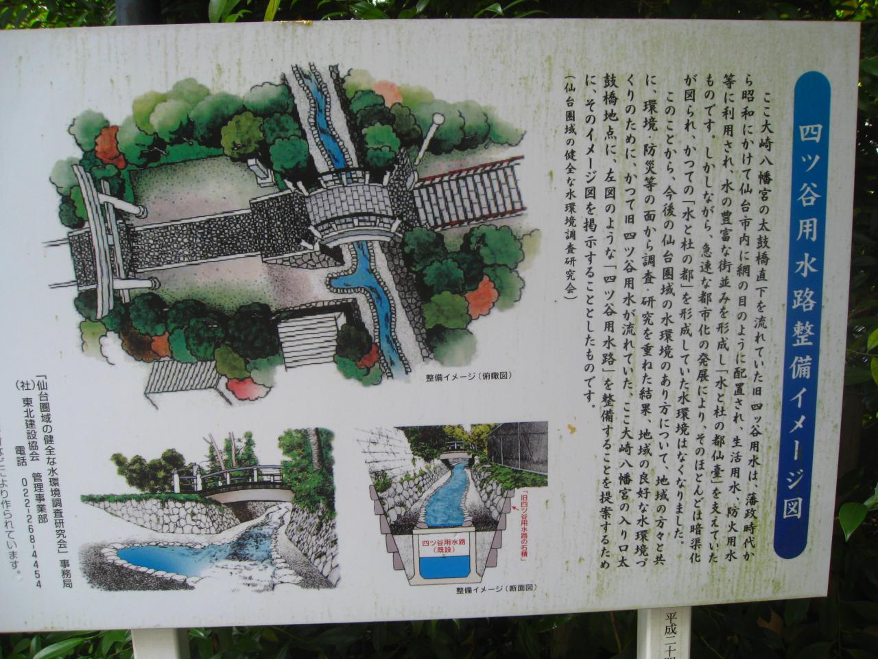 大崎八幡宮の石段下にも四ッ谷用水跡が残っています。