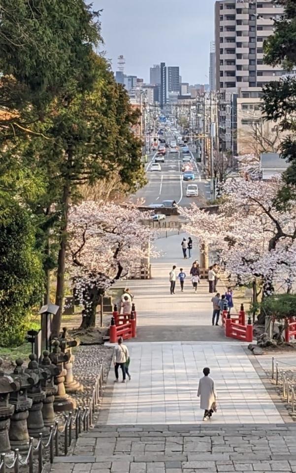 東照宮から見た宮町通りです。仙台駅方面に真っすぐ通ってます。