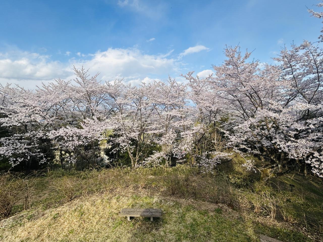 桜が満開できれいでした。花見広場に桜がたくさんありますが、山頂広場も桜の木で埋め尽くされていて見事です。駐車場がないため混雑していません。