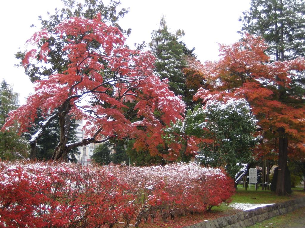 2度目の降雪では少し積もりました。紅葉の真っ最中に雪が積もるのはめずしいですね。