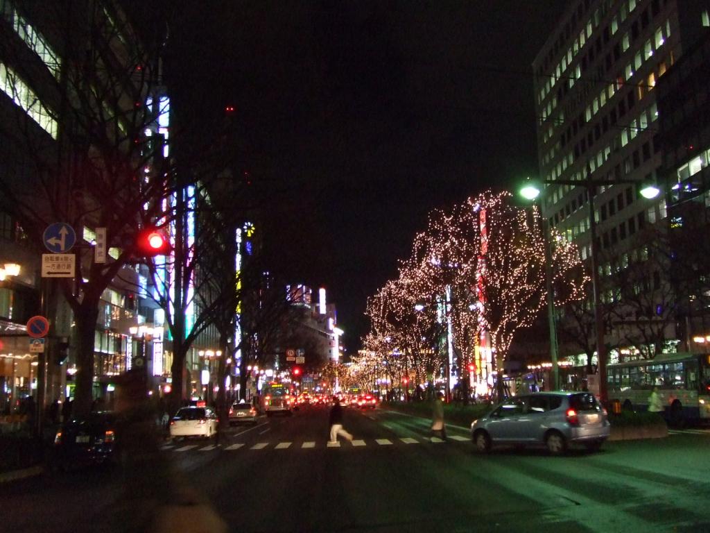 青葉通りで仙台駅方面を撮影。ページェント点灯時間は