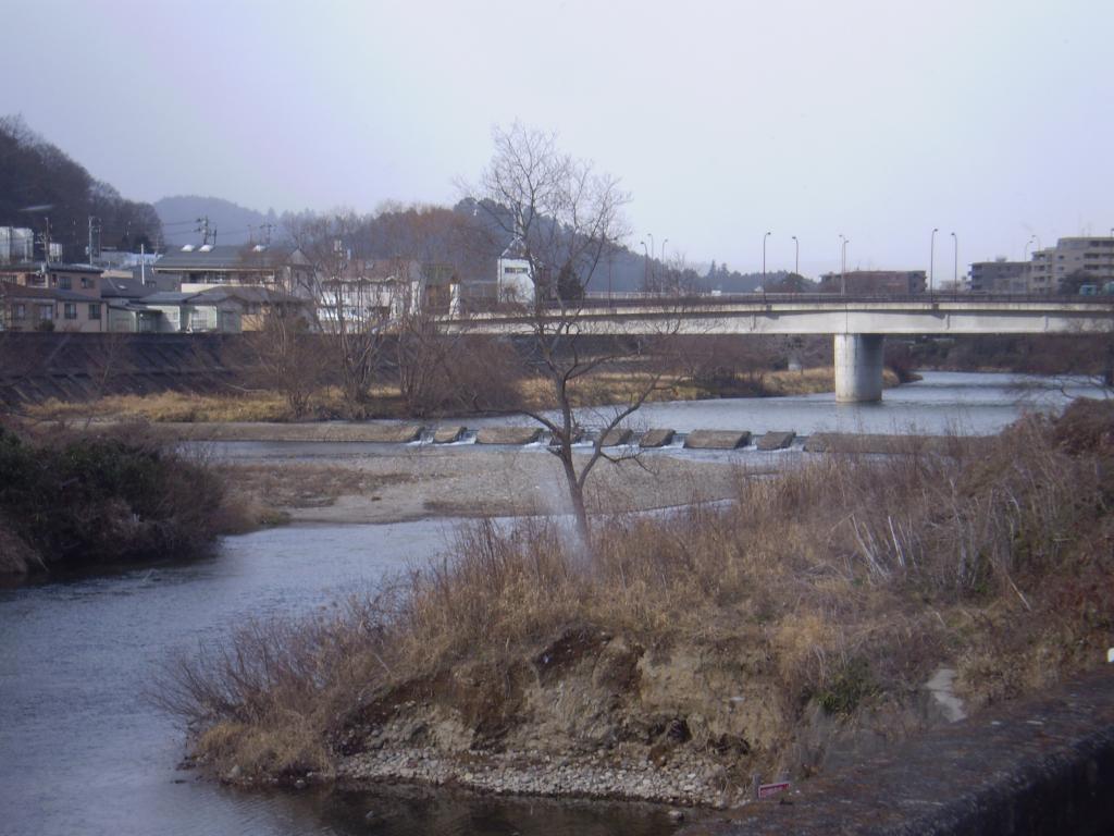寒さを感じさせる寂しい一枚です。真下は七郷堀の取水口です。