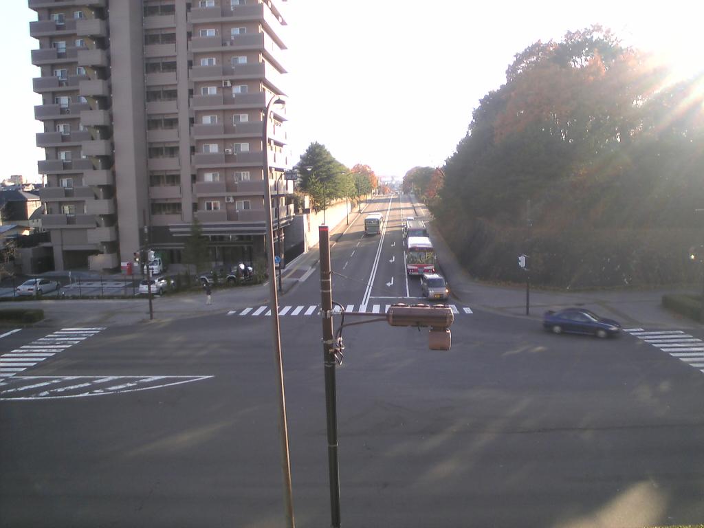 この交差点は行政区の境目になります。写真は地下鉄旭ヶ丘駅前から北上したT字路交差点。写真右側は台原森林公園です。