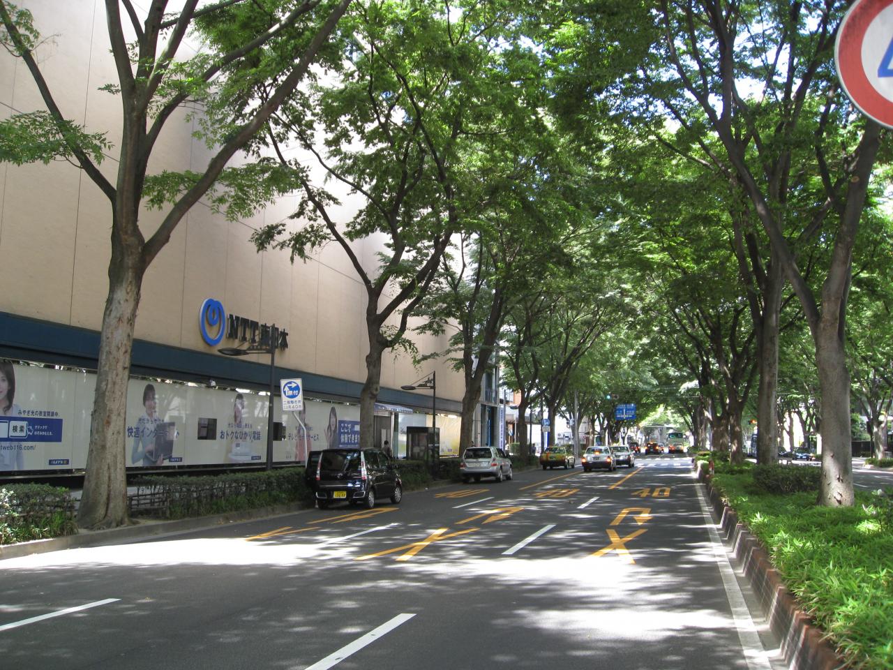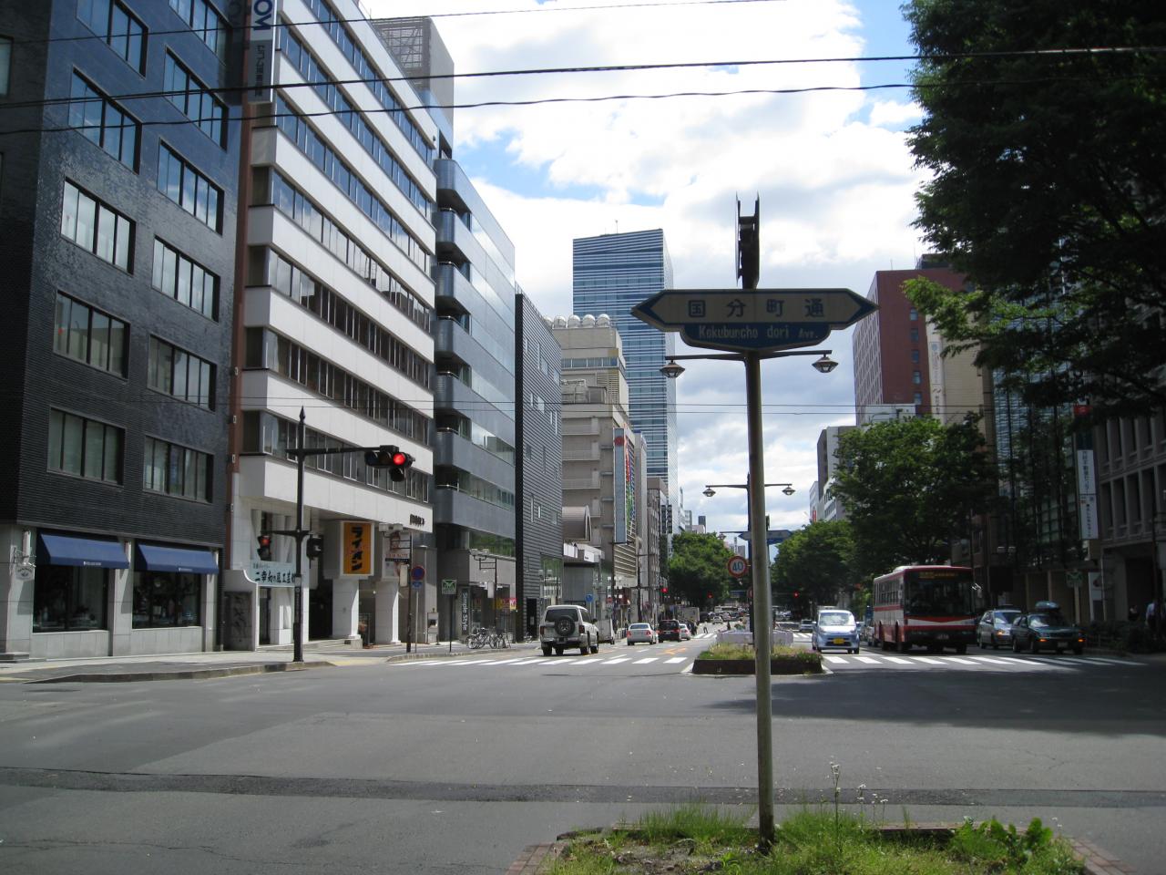 青葉通りは、地下鉄工事のためケヤキがなくなった区間と、ケヤキが生い茂っている区間と、対照的です。国分町通りと青葉通りの交差点はまさにそんな地点です。