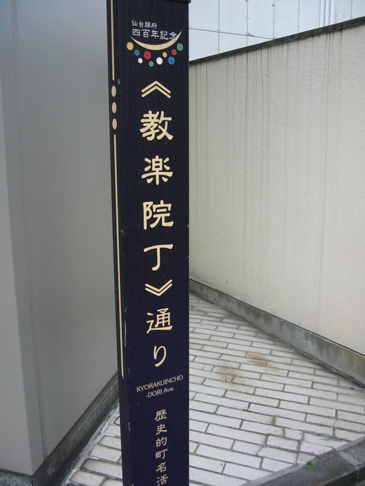 仙台市道南光院丁線の一部で、「柳町通り」〜「南町通り」の間を「教楽院丁」と呼びます。現在は、全体合わせて「南光院丁」、「1.5番町」とも呼ばれています。