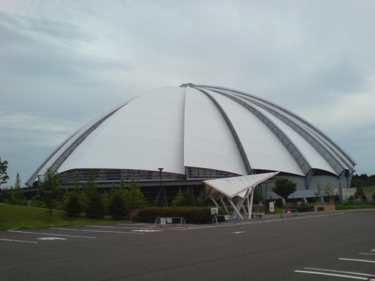 「仙台ドーム」とでも名付けたくなるような、泉区野村にあるドーム式の屋内グラウンドです。屋根が開いているのはめったに見られませんが、開閉式なのですね。野球、ソフトボール、サッカー、テニスなど、様々なスポーツで楽しめます。