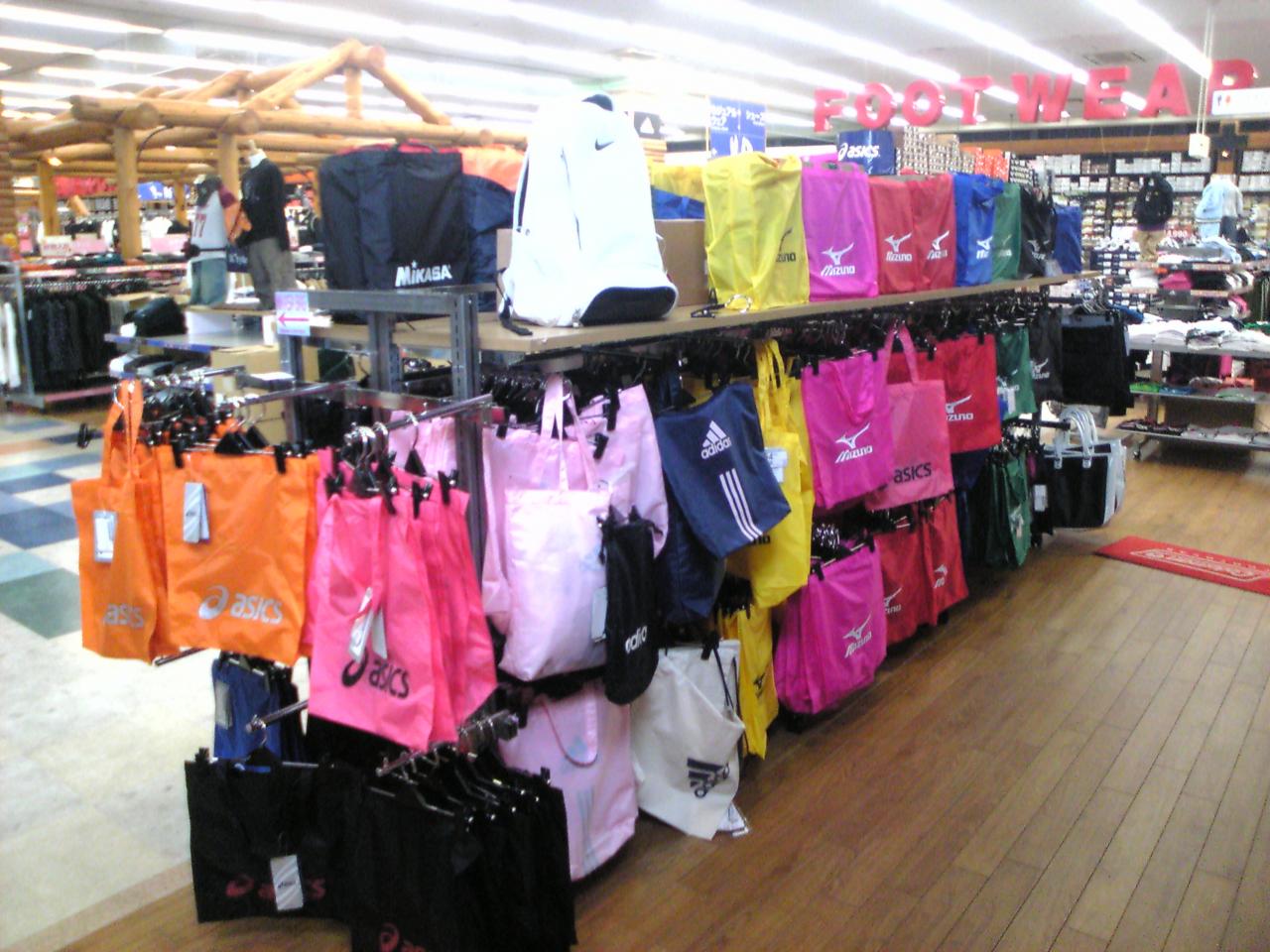 MIKASAバッグコーナー裏側にはアディダス、アシックス、ミズノ製のバッグもあります。