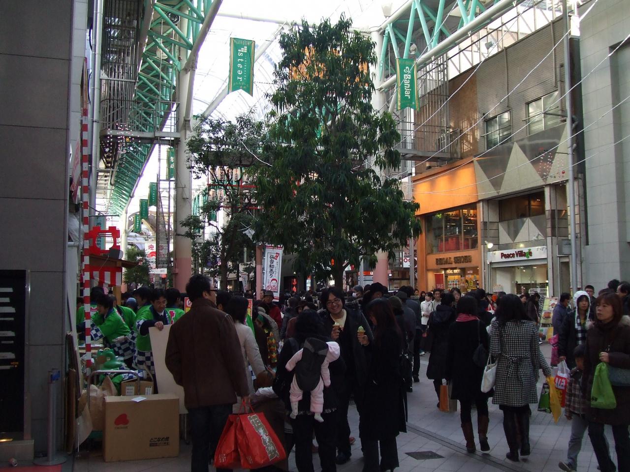 ご覧いただいている皆様。新年明けましておめでとうございます。今年もよろしくお願い致します。仙台名物初売りの2日午後の様子です。この日は持ちきれないほどの買い物袋をさげて歩いている方をたくさん見掛けました。今年は景気回復するといいですね。