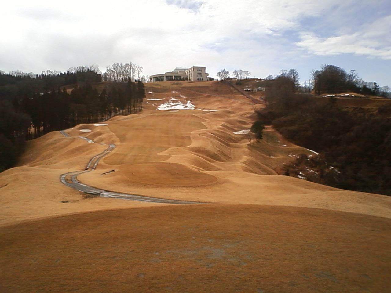 仙台市太白区にありますグレースリッジカントリークラブです。メインの写真は、9番ホールです。距離は短いが、右はOB、フェアウェーはご覧のとおり馬の背の打ち上げでどう攻めるか!?