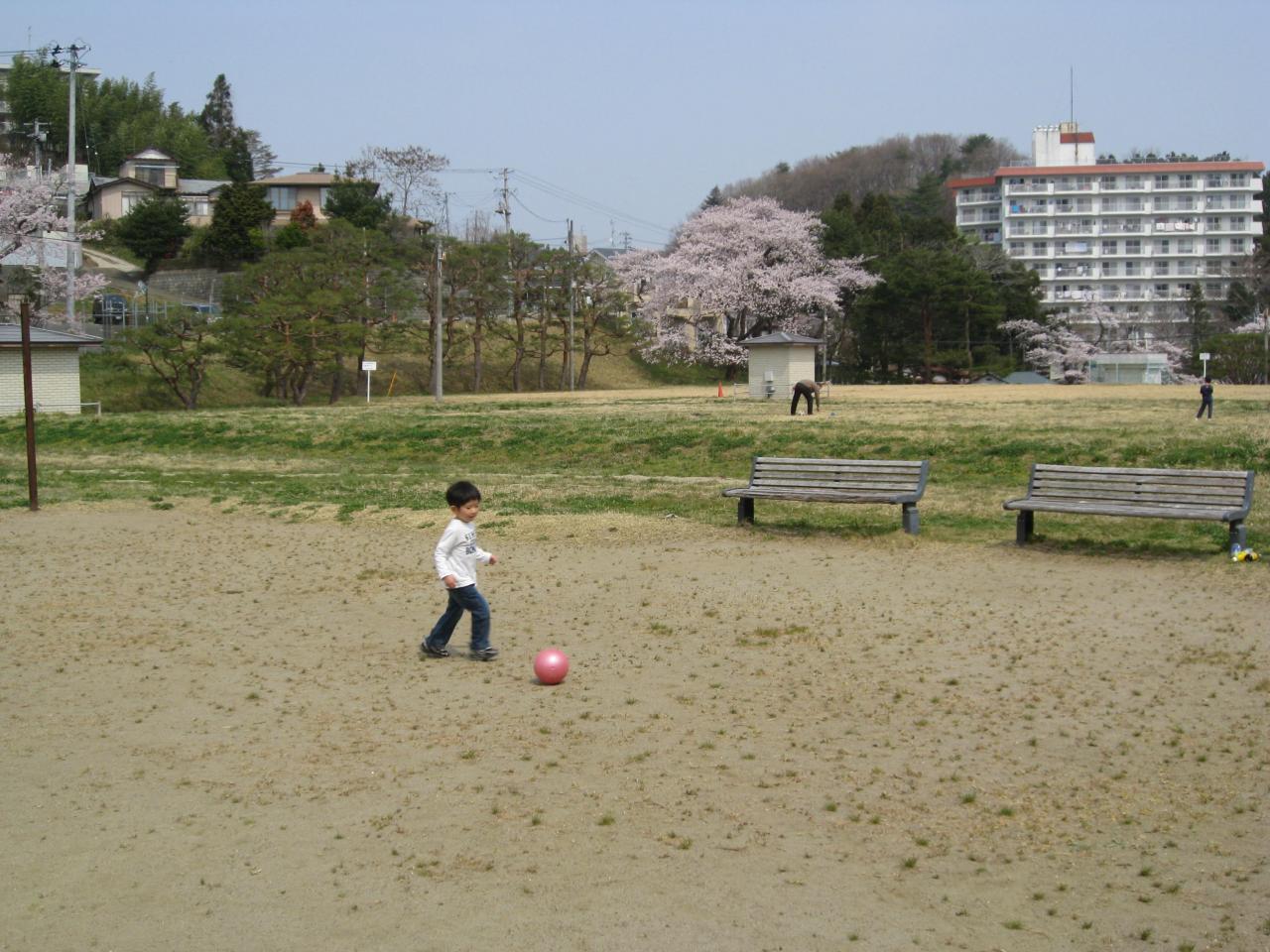 公園でボールを蹴っている男の子、とってもかわいい!です。