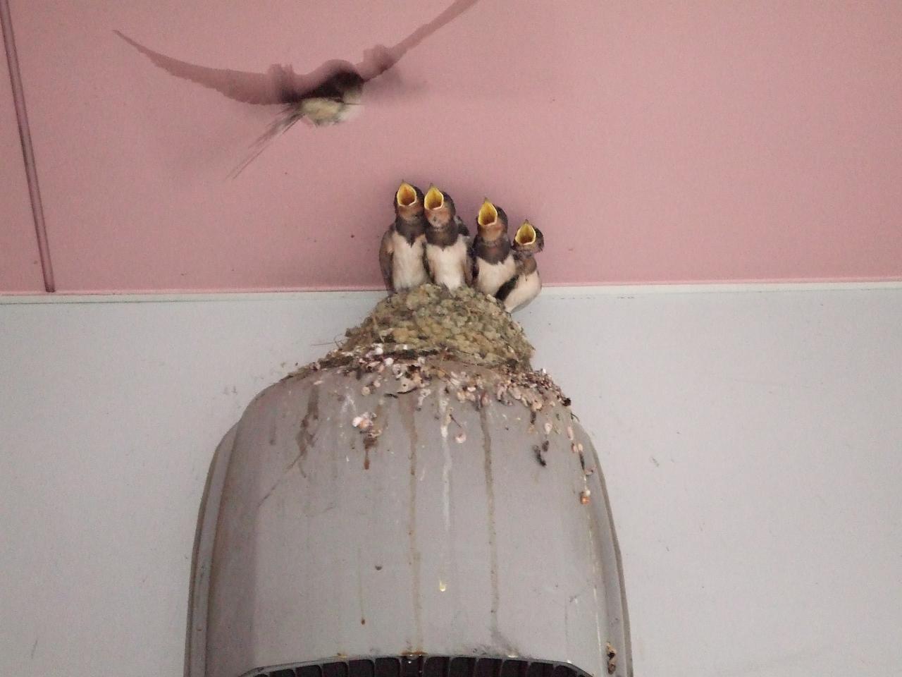 大きくなったヒナです。地域の方が写真をプリントして届けてくださったり、人気者のツバメでしたが、7月26日(日)、無事に巣立ったそうです。みんな寂しがっていますが良かったですね。