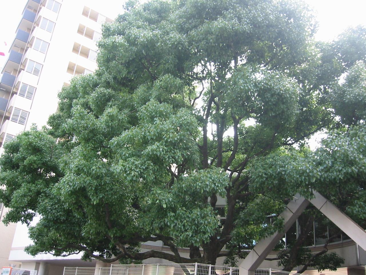 樹齢100年を超える東二番丁小学校の敷地内にある楠です。