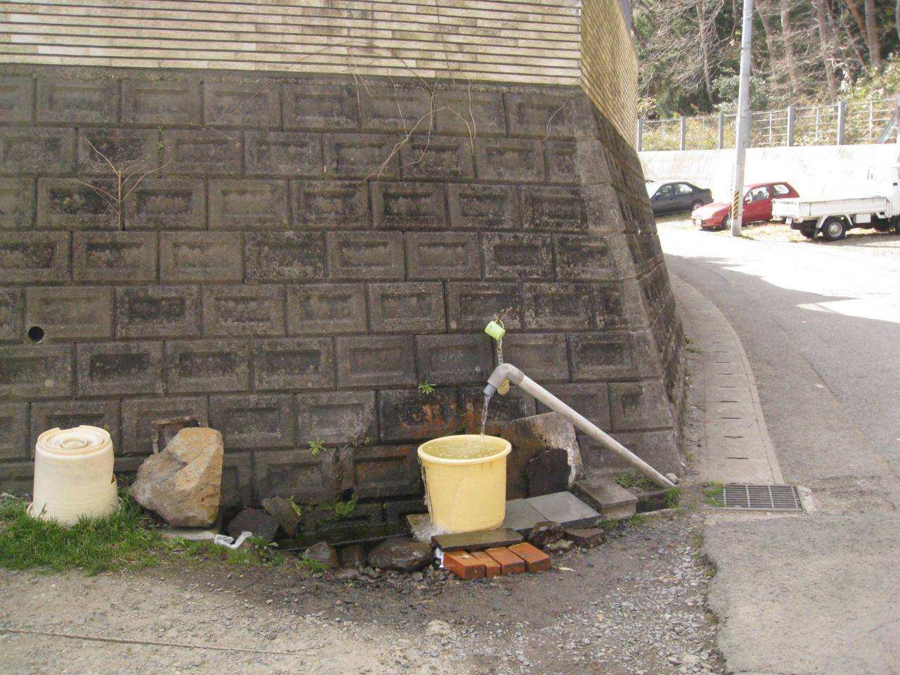この近辺には湧き水が多く、なかでもこの弘法山(こうぼうやま)清水は、道路の下から常時湧き出て水量も多く、今でも飲料に適しています。