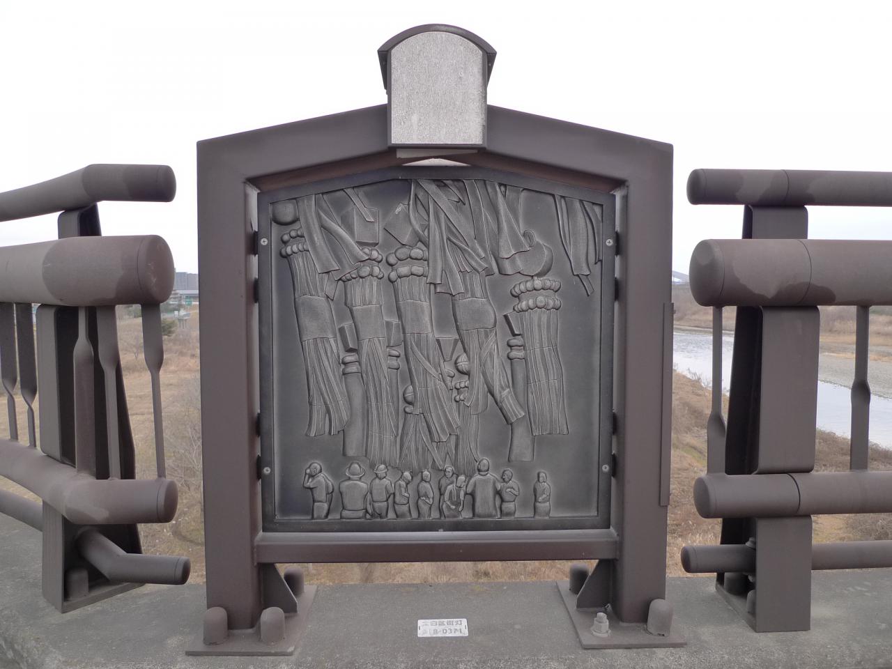 太白大橋には伊達政宗と七夕祭りをモチーフにしたレリーフが数か所設置されています。