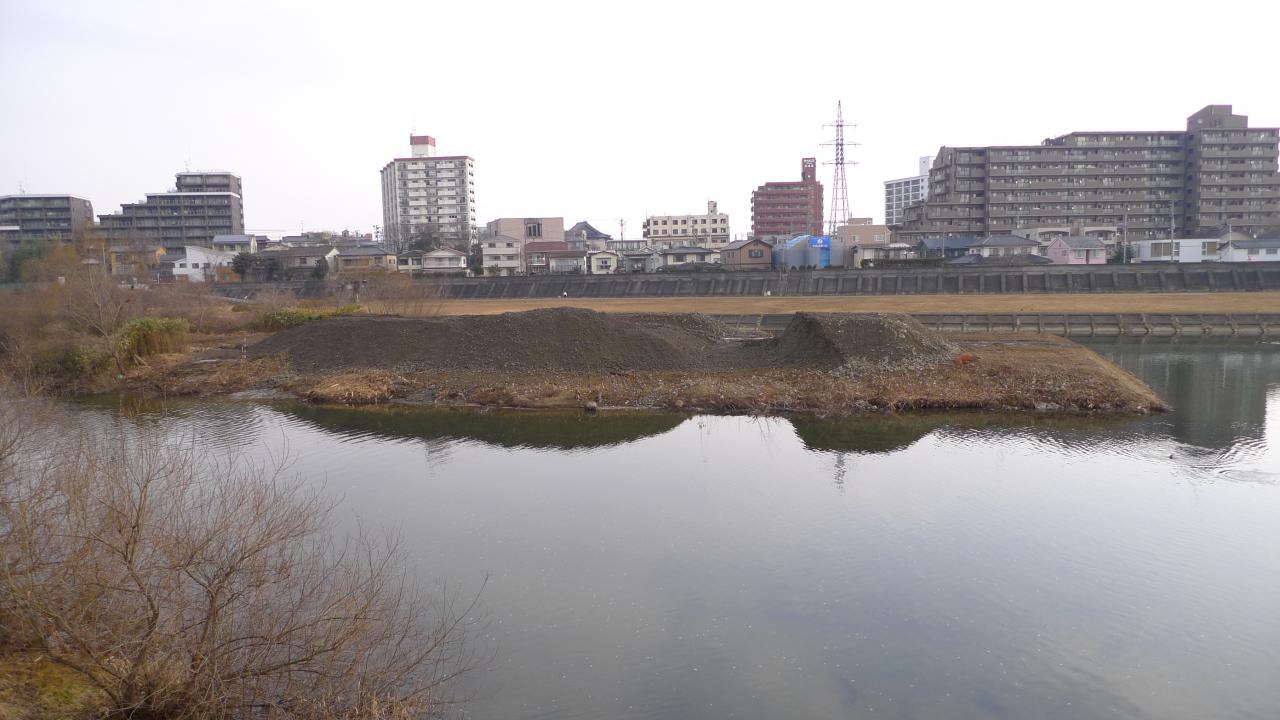 現在、宮沢橋と愛宕橋間の中州の除去工事をしています。