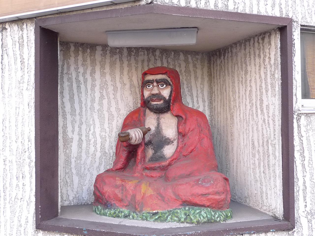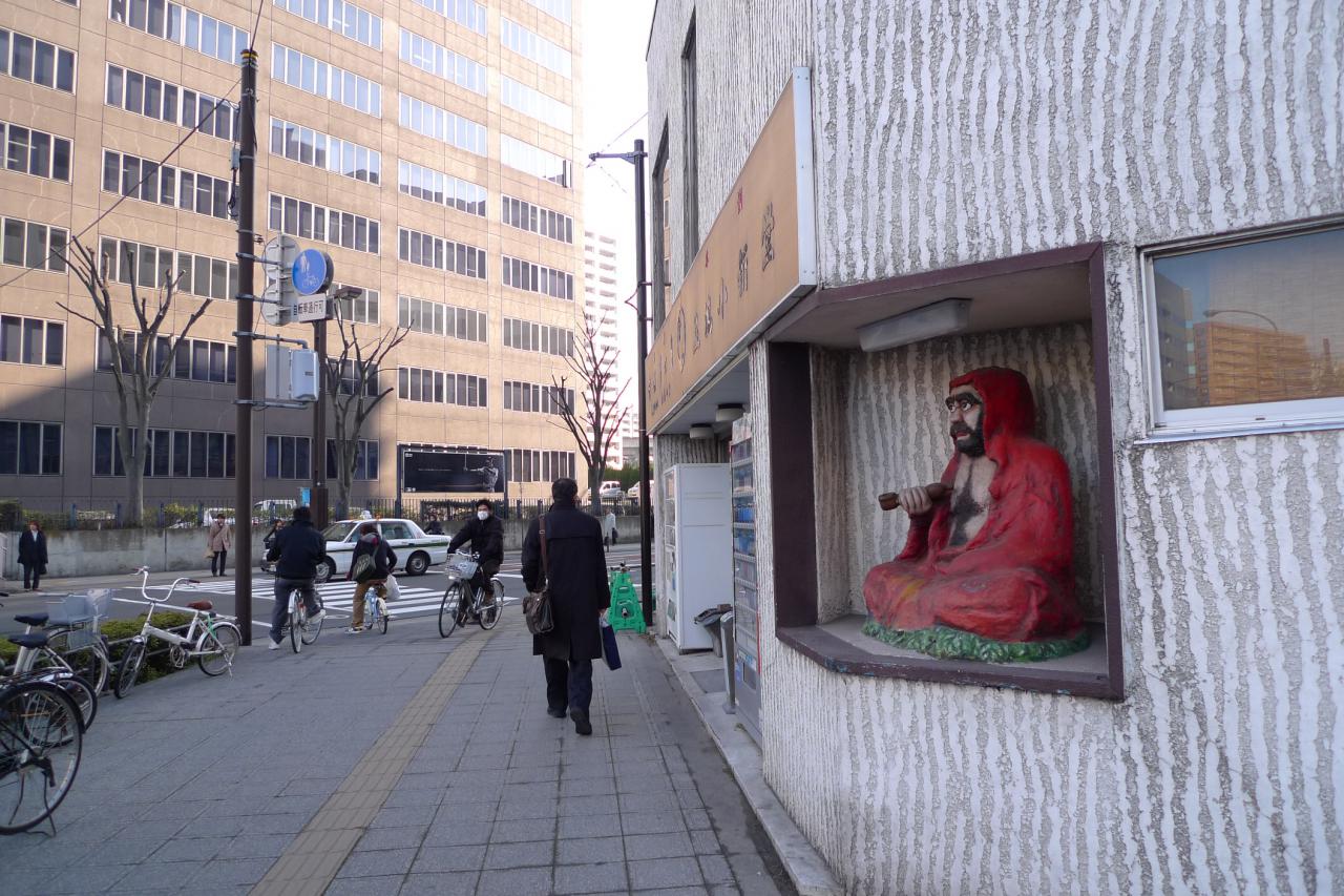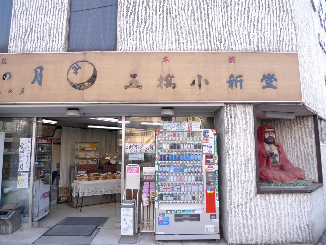 五橋の小新堂さんに置かれている赤いだるま像です。