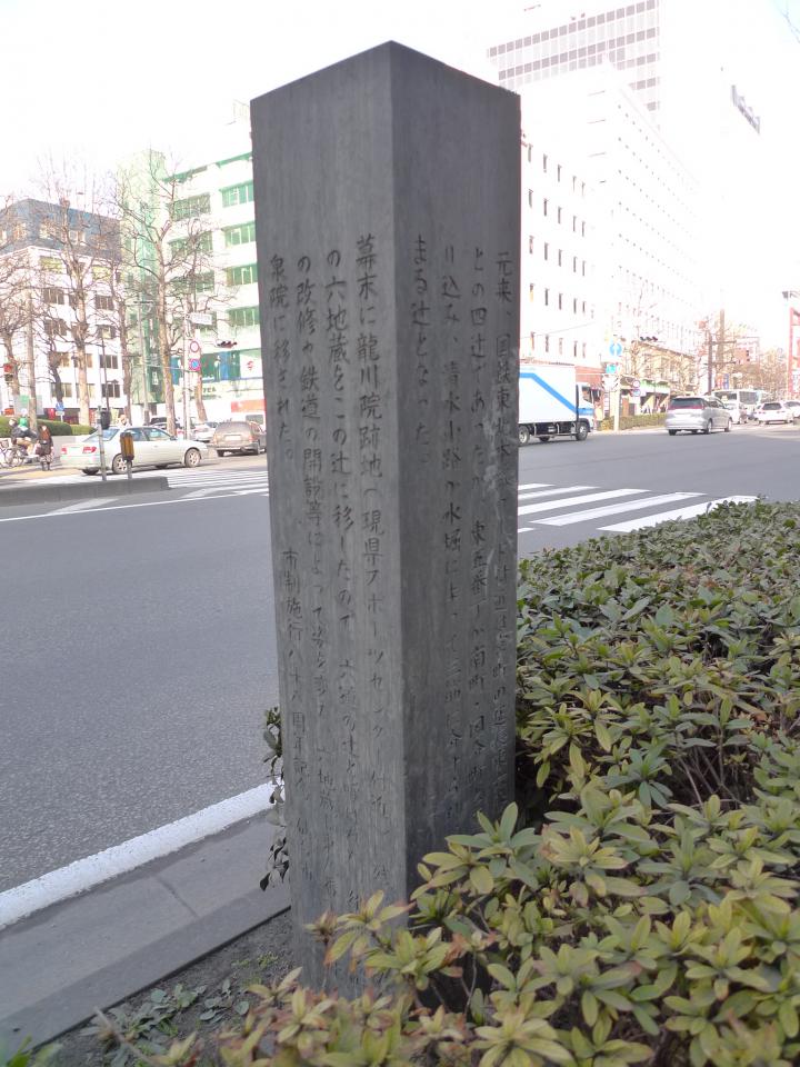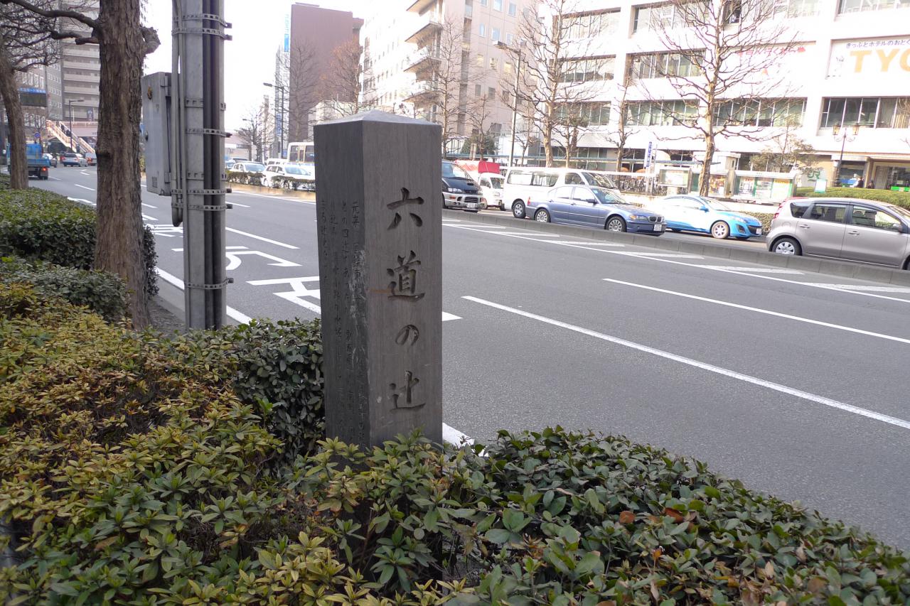 北目町のガード付近にある「六道の辻」の道標です。