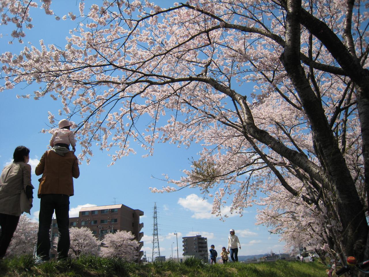桜が満開になった笊川では多くの人でにぎわっていました。