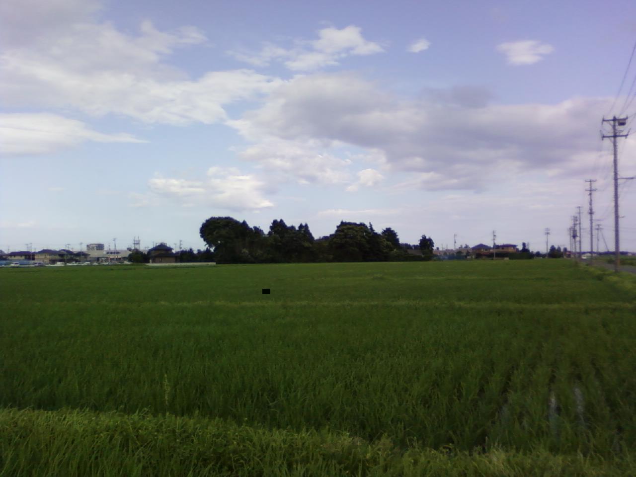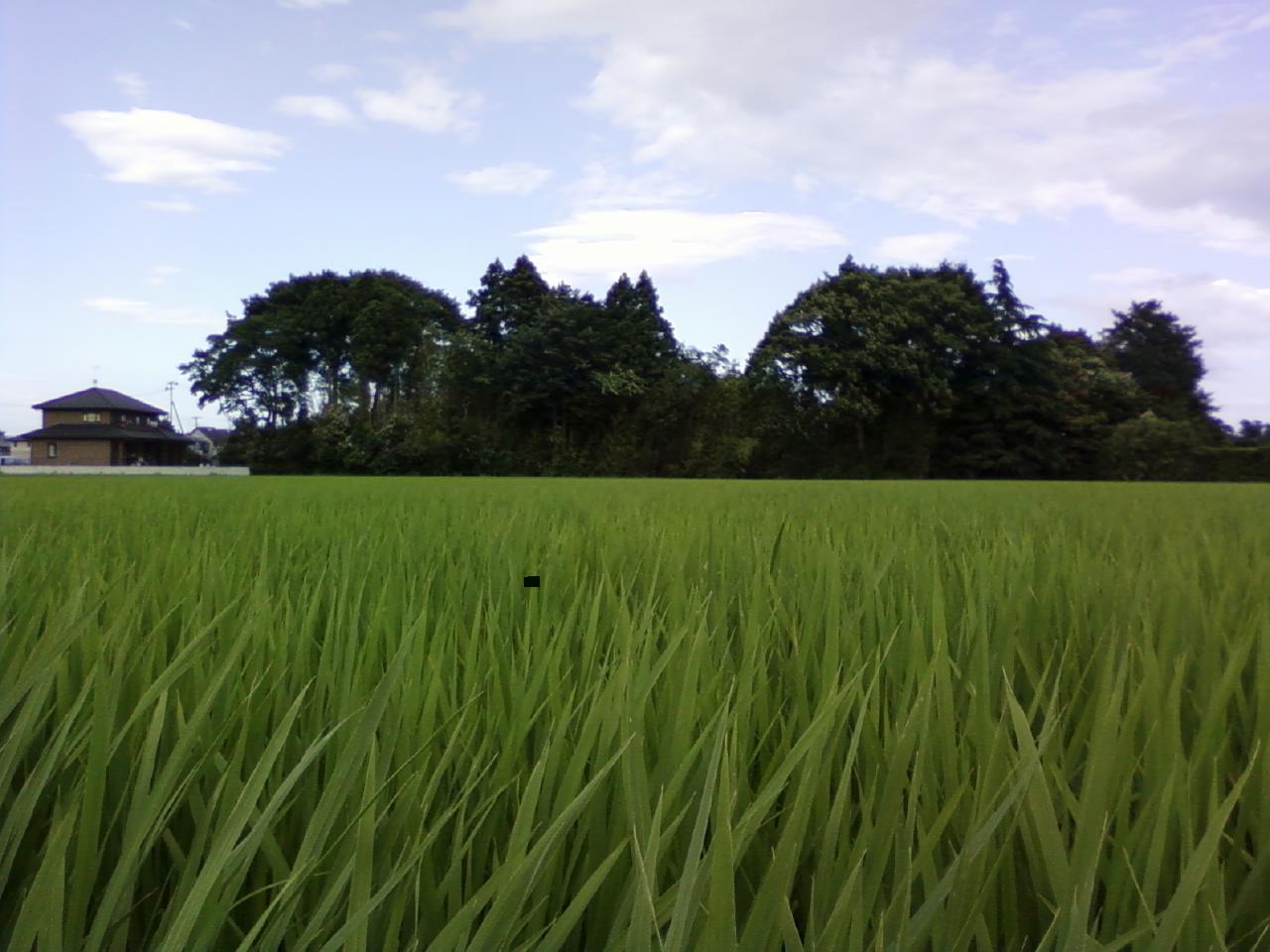 さわやかな風にイネが一面の青いさざ波をつくりました。