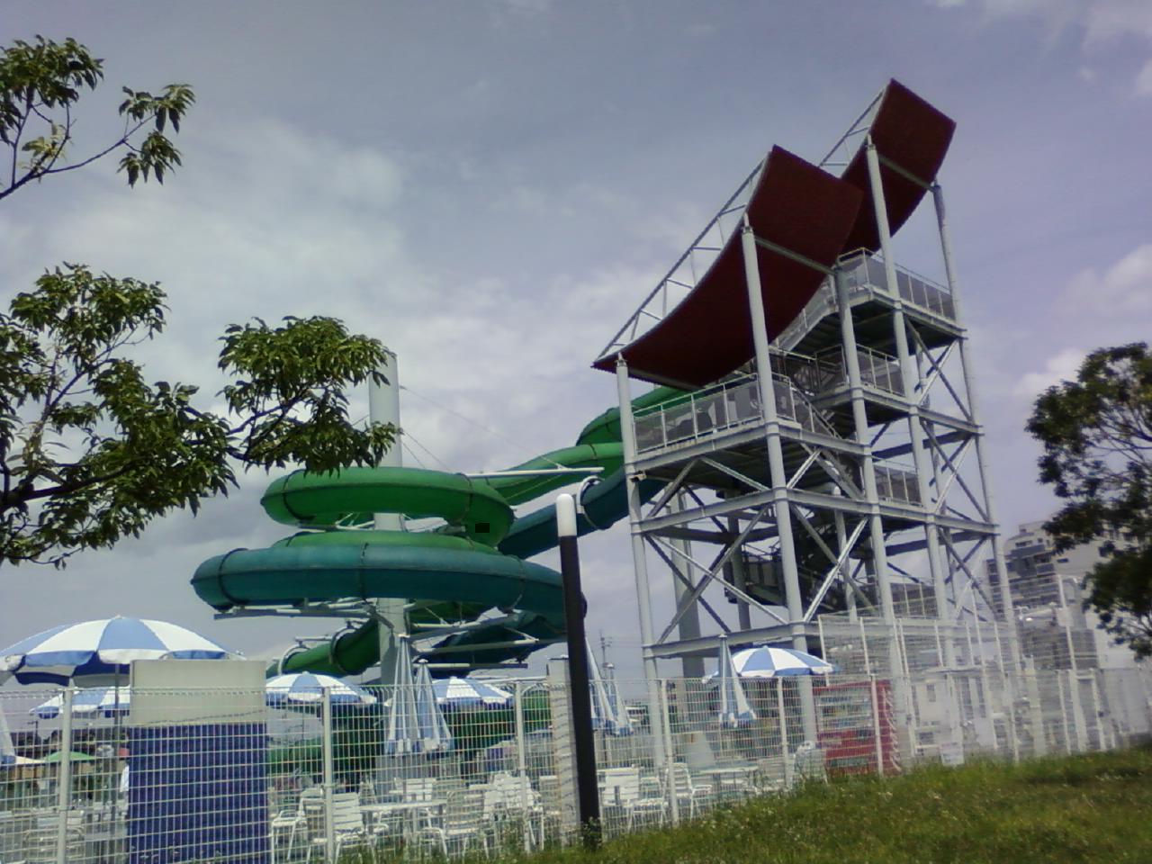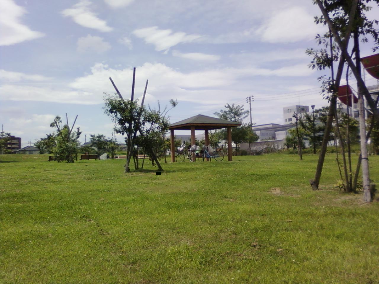 七郷中央公園とその周辺です。公園の隣にはウォータースライダー付きのプール(旧サンピア敷地内)もあり子どもたちの歓声が上がっています。